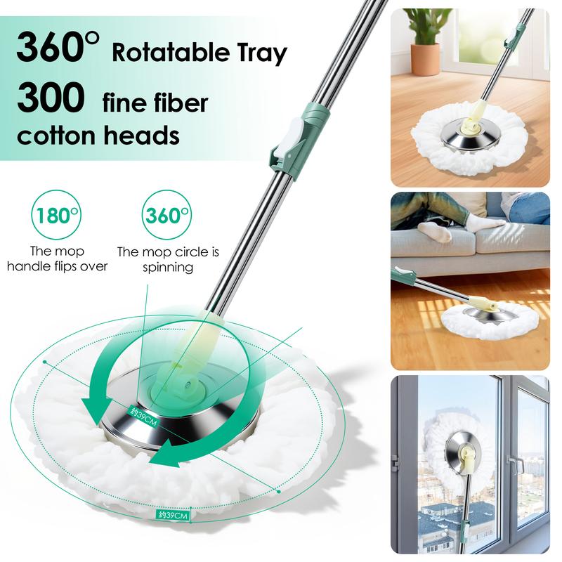 The mop and bucket set comes equipped with a mop head that can rotate flexibly 360°. Whether it's a tight corner, under furniture, or other hard-to-reach areas, it can easily reach and clean. The rotating design greatly expands the cleaning area, reducing blind spots, ensuring that every inch of the floor in the home is as clean as new.